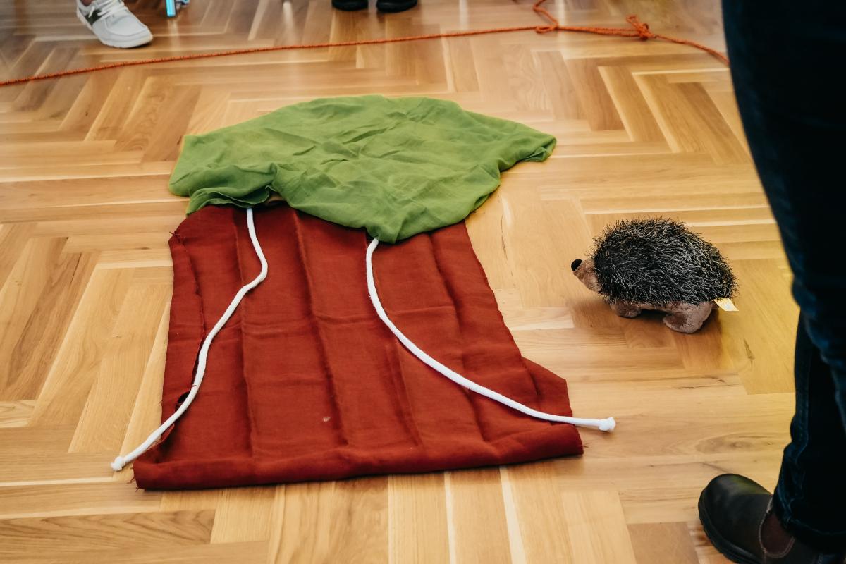 Im praktischen Teil wurde eine beispielhafte Methode vorgestellt, mit der das Thema mit Kindern aufgegriffen werden kann: das Legen eines Bodenbildes zur Geschichte eines alten Baumes, der stirbt. Mit Naturmaterialien wie Blättern, Rinde, Seilen, Tüchern und Waldtieren aus Plüsch entstand ein symbolträchtiges Bild, das vom Leben, vom Sterben, vom Abschied und von neuer Hoffnung erzählt.