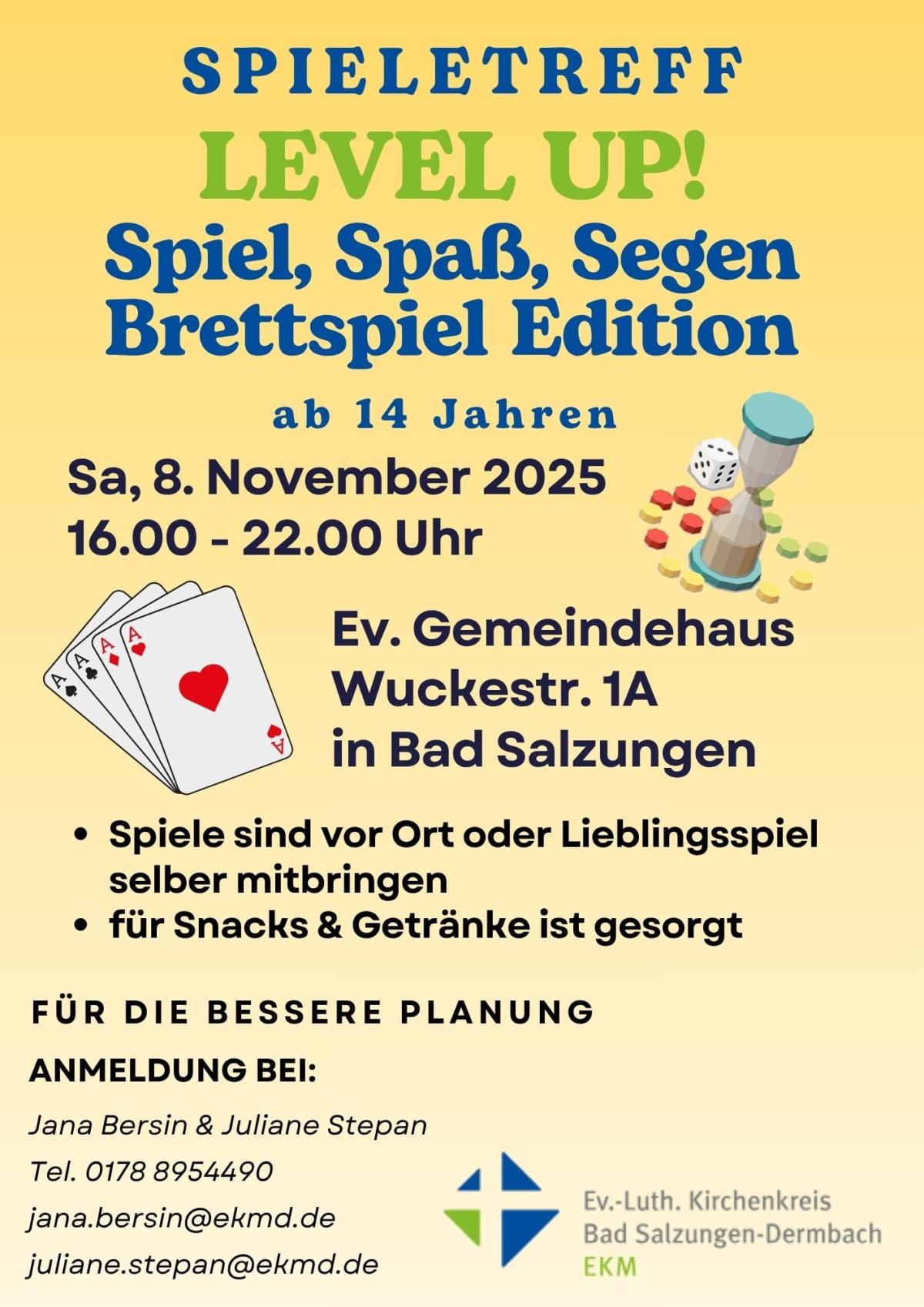 Ein Spiel ist mehr als nur Zeitvertreib – es ist eine Reise, ein Abenteuer, ein Erlebnis. Und das Beste: Nur gemeinsam erreicht man das Ziel. Für alle, die Gemeinschaft, Spannung und Spaß lieben, startet im Gemeindezentrum Bad Salzungen ein neues Highlight: der erste Spieletreff Level Up!