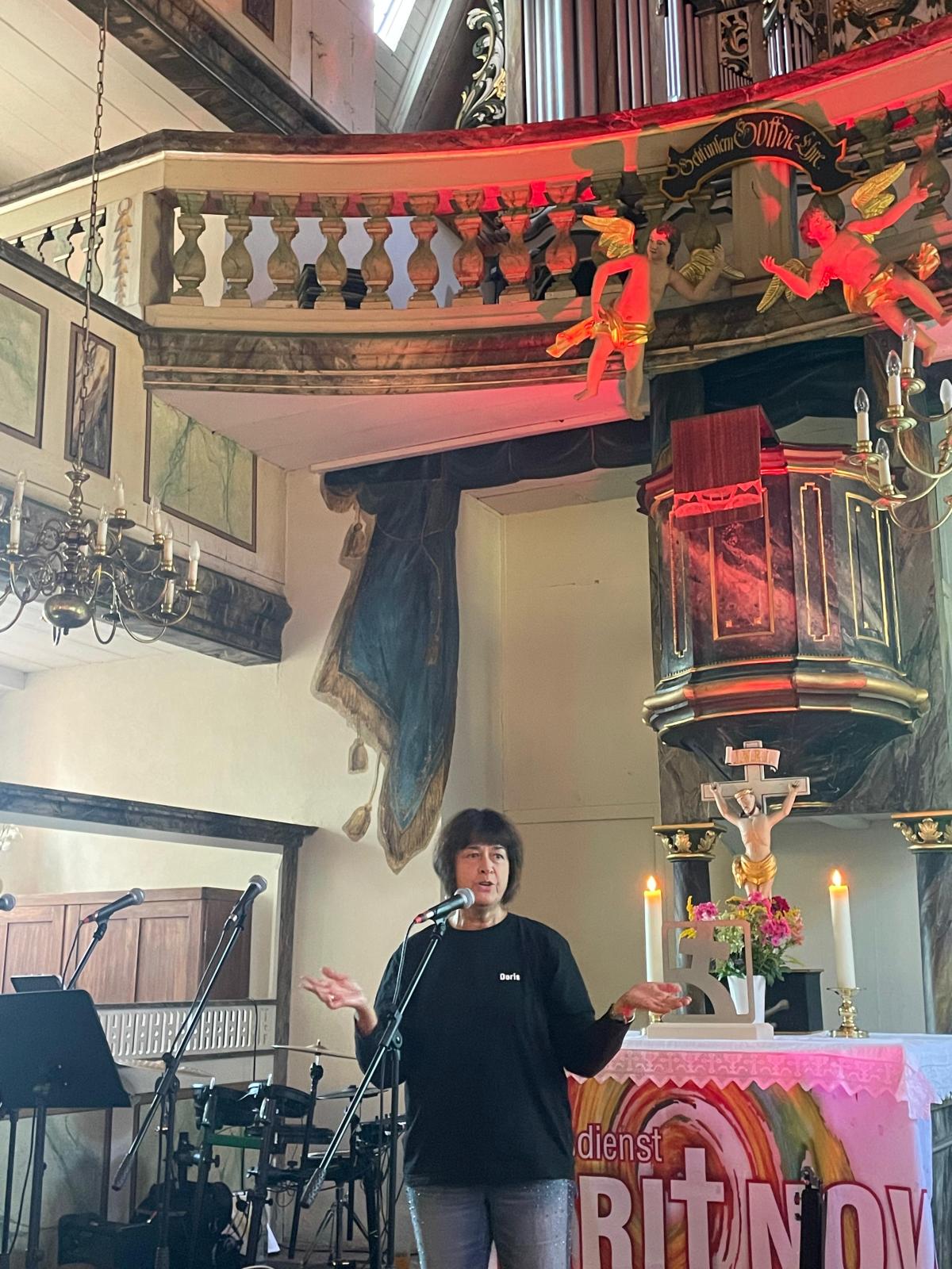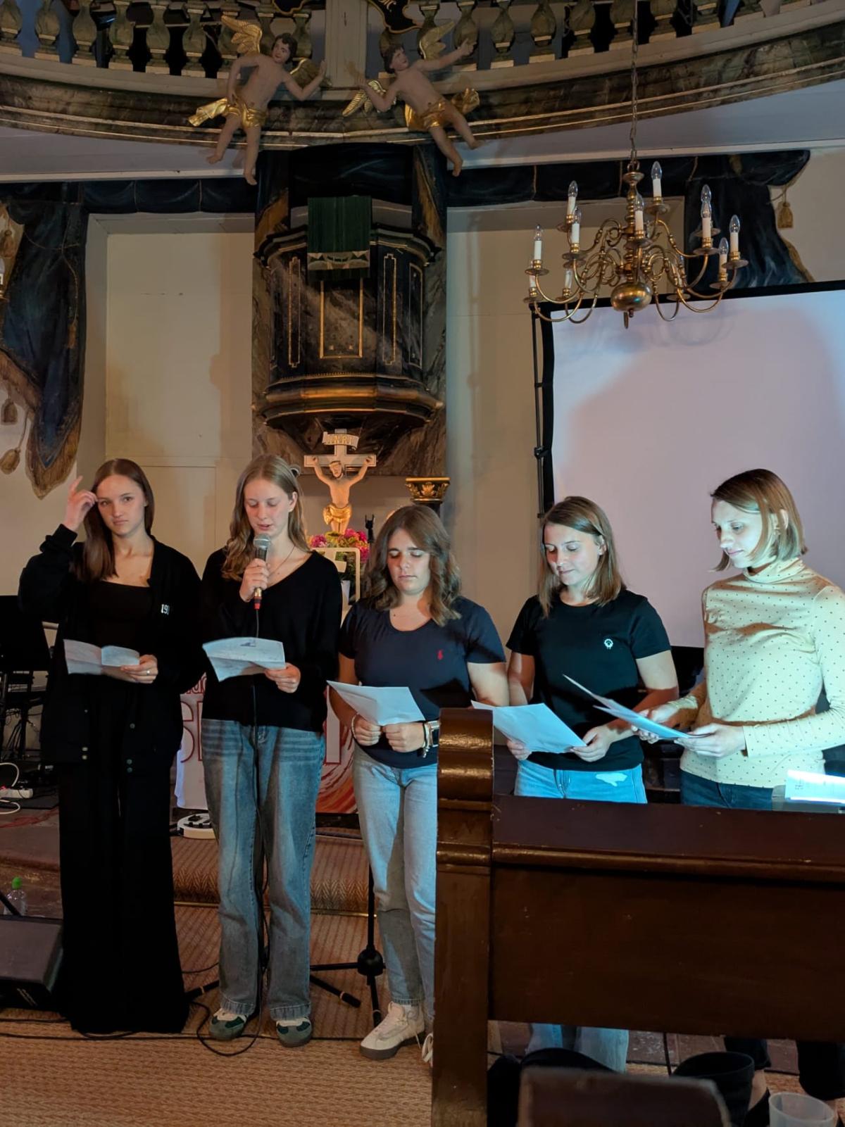 Am Freitag, dem 29. August 2025, öffnete die Laurentius-Kirche Kaltenwestheim ihre Türen für den Jugendgottesdienst „Spirit Now“. Etwa 60 Besucher ließen sich einladen, mitzufeiern. Unter dem Motto „Gesehen – gehalten – getragen“ eröffnete Kreisreferentin Doris Gerhardt nach dem Countdown den Gottesdienst. Sie lud die Besucher ein, Dinge, die sie im Leben tragen, auf Zettel zu schreiben. Diese Zettel wurden dann in einen Rucksack gepackt, zum Altar getragen und somit in Gottes Hand gelegt.