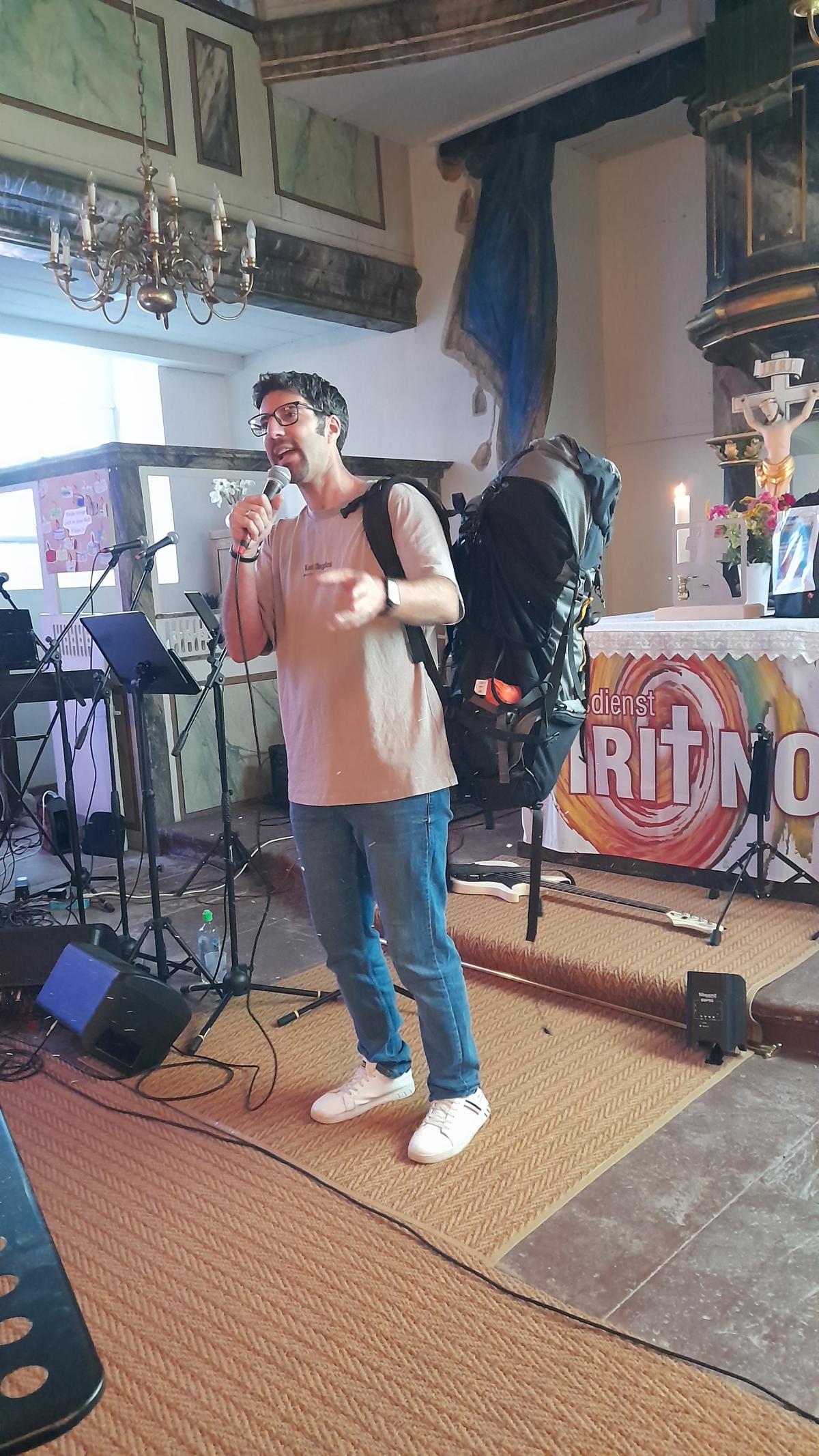 Für den Predigtimpuls war diesmal ein Gastprediger eingeladen worden. Pedro Inacio, Jugendpastor der Freien Christengemeinde Bad Hersfeld, traf in seiner Predigt genau den Ton der Jugendlichen. Er machte deutlich, dass wir alle von Gott gesehen werden – auch oder besonders, wenn es uns schlecht geht: wenn wir das Gefühl haben, von unseren Freunden ausgegrenzt zu sein. Und genau in diesen Momenten trägt uns der Glaube an Gott. Auch griff er nochmal den Rucksack auf, der symbolisch für Gott steht, auf den wir all unsere Sorgen packen können und die wir dann nicht mehr so schwer tragen müssen.