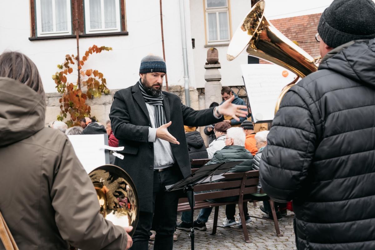 Die liturgische Leitung lag in den Händen von Pfarrer Karl Weber, der den Gottesdienst würdevoll gestaltete. Musikalisch wurde die Feier eindrucksvoll vom Posaunenchor Schweina unter der Leitung von Kreiskantor Damian Poloczek begleitet. Als zum Abschluss das bekannte „Eine feste Burg ist unser Gott“ erklang – der „Schlager des Tages“, wie Pfarrer Weber augenzwinkernd bemerkte – füllten die kräftigen Bläserklänge den Lutherplatz und sorgten für einen stimmungsvollen Abschluss des Gottesdienstes.
